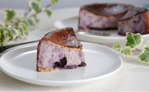 長野市の高地で自然の恵みに育まれたブルーベリーをたっぷりと使用。クリームチーズに生クリームとブルーベリー果実を混ぜ合わせ、自家製ブルーベリージャムを底に敷き詰めくちどけ滑らか、ブルーベリーの酸味が爽やかにしっとり柔らかく、濃厚で生地の紫色はブルーベリーの色をそのままに風味豊かに作り上げました。