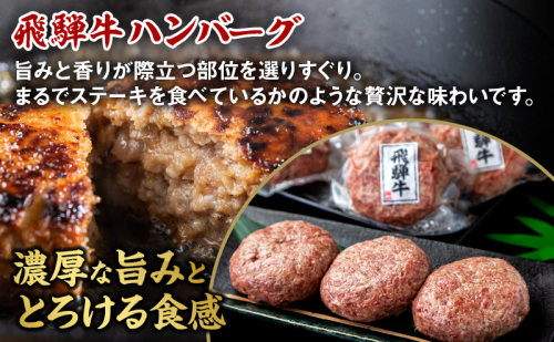 飛騨牛を知り尽くした焼肉店だからこそ実現できた、とびきり美味しいハンバーグ。 飛騨牛の中から、旨みと香りが際立つ部位を選りすぐって仕上げました。 焼き上げると、口の中いっぱいに広がる濃厚な旨みととろける食感。 まるでステーキを食べているかのような贅沢な味わいです。 約150g×2袋に小分けして冷凍で送ります。