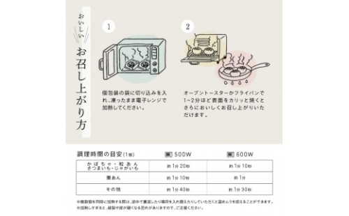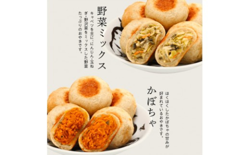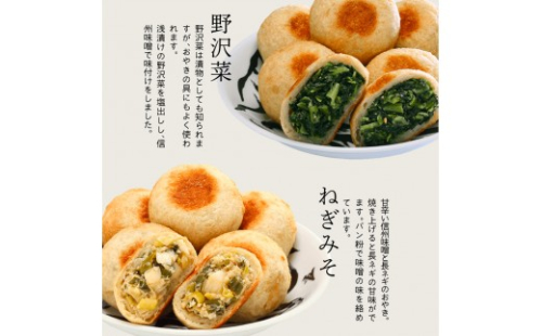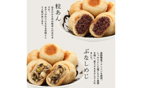 - 野沢菜、野菜ミックス、かぼちゃ、粒あん、ぶなしめじ、ねぎみそ 各2個 計12個