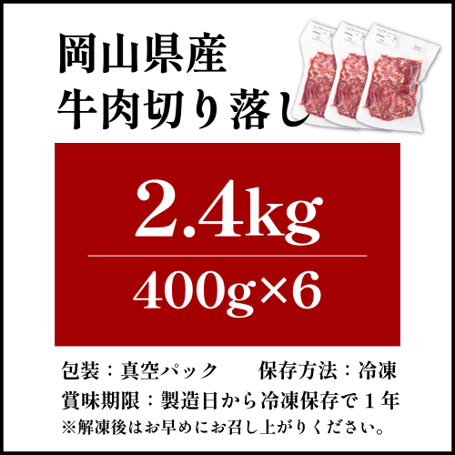 【7月配送】岡山県産牛肉切り落とし約2.4kg(約400g×6パック) [015-a013-07]