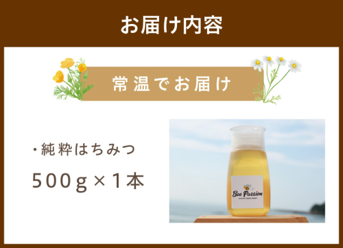 500gのハチミツです。蜜だれがおこりにくい専用ボトルに入れてお届けします。