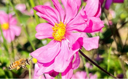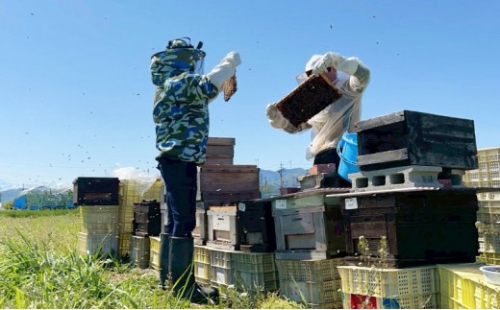 長野市・川中島平で大正時代から約100年、4代にわたって続く果樹園です。 信濃川(千曲川)と犀川が出会うこの土地は、昼夜の寒暖差が大きく、果樹や花々が元気に育つ自然豊かな地域。果樹づくりと養蜂をともに行い、ミツバチたちが果樹の受粉を手伝いながら集めたはちみつをお届けしています。