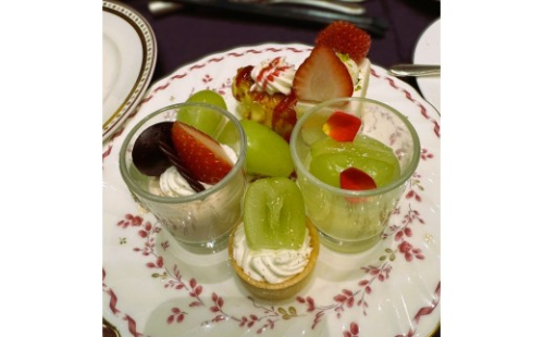 ※画像のデザートはホテル様の加工品になります。お届けはシャインマスカットのみになります。