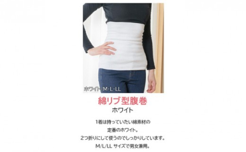 - 岩盤浴 リブ型 綿 腹巻き ホワイト【サイズ選択可】【マルヤマシルク】3511