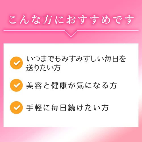 いつまでもみずみずしい毎日を送りたい方。美容と健康が気になる方におすすめです。