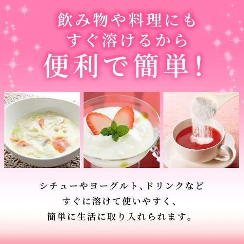 パウダーなので、シチューやヨーグルト、ドリンクなどと混ぜるだけで毎日手軽に摂取ができます。