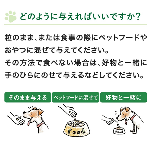 人用の健康補助食品と同じ品質基準で作られているため、安心して与えていただけます。