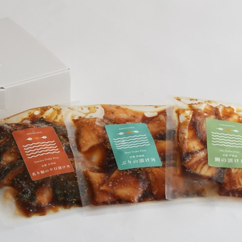 - 京都丹後の夕日漬け丼のもと 3種(伊根産ぶり・伊根産真鯛・京さわらの炙り)