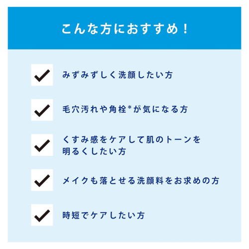 泡立て不要。さらに軽いメイクも落とせる2in1洗顔料で、お手軽に透明感ケアが叶います。(濡れた手・顔にも使えます。)