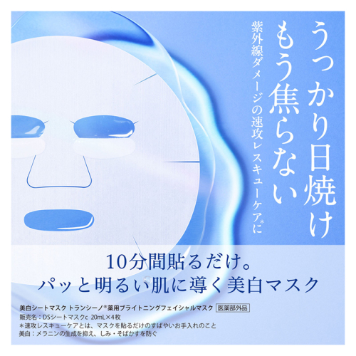 紫外線ダメージを受けた肌にマスクを10分貼るだけで、すばやく透明感ケア!