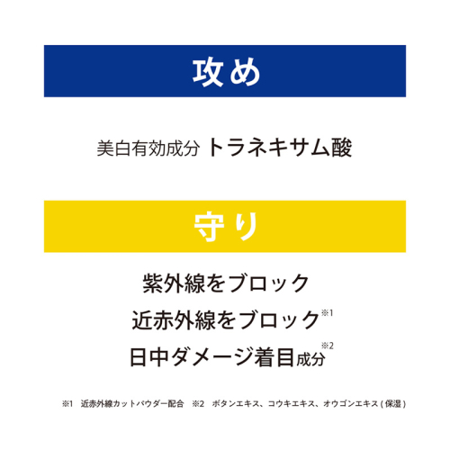 ●美白・肌荒れ防止有効成分「トラネキサム酸」配合。さらに、近赤外線カットパウダーを配合。美白ケアしながらマルチカットが叶う。