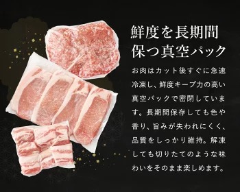 肉全体は柔かく、サシが適度に入り、脂に甘みがあり、ビタミンEを日本飼養標準の2倍に強化したエサの効果でドリップロスや変色が少なく保存性に優れ、いつ食べてもおいしさが変わらない豚肉です。
