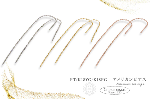 通常のアメリカンピアスよりチェーンを約1cm長く仕上げており、動くたびに耳元でより優雅な揺れ感を演出します。