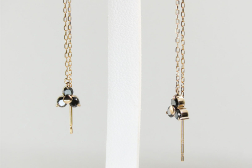 通常のアメリカンピアスよりチェーンを約1cm長く設計し、耳元で揺れるたびに洗練された印象を与えます。