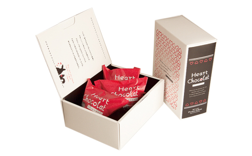 ショコラをたっぷり使ったガトーショコラの生地に、細かく刻んだアーモンドを合わせて、ハート型に焼いています。表面にはショコラをテンパリングしてつけています。かわいいハート型のお菓子の完成!