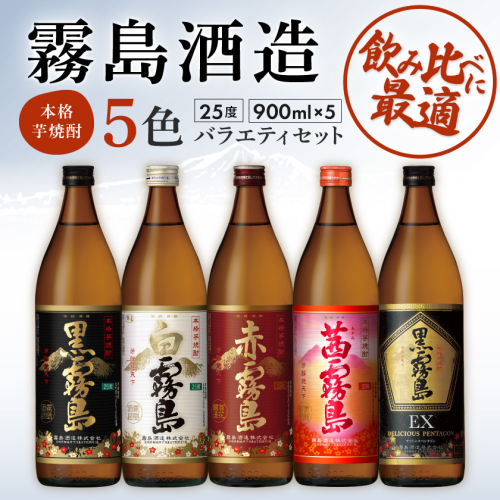 霧島酒造(25度)900ml×5色バラエティセット_17-3801-Y 2583040 - 宮崎県都城市