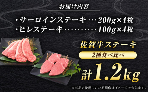 佐賀牛 ステーキ 2種 計1.2kg 食べ比べ セット (サーロインステーキ 4枚・ヒレステーキ 4枚) 吉野ヶ里町/ミートフーズ華松 [FAY122]