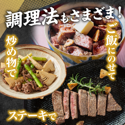 JAみやざき系統和牛枝肉共励会出展牛です。 『宮崎牛』は厳しい認証基準を設けており、宮崎県内で生産肥育された黒毛和牛で、日本食肉格付協会が定める格付基準の肉質等級4等級以上のものをブランド認証しております。 その『宮崎牛』の中でも最高級のA5ランクのきめ細やかなサシの入った「宮崎牛」です。 ランプの先端、いちばん霜降りが入った部分がイチボです。その霜降りの多さからとろけるような旨味が特長です。 モモ肉はサイコロステーキ用にカットしました。適度な霜降りでさっぱりとジューシーで柔らかく脂身が苦手な方におススメです。おろしポン酢をかけて、さっぱりと食べられる一品です。 赤身切り落としは、ウデ・モモを中心に切り落としにしました。炒め物・煮込み料理など使い回しが万能なので、冷凍庫に常備しているととても安心です。 様々なお料理をさらに美味しくしてくれる自慢の宮崎牛をぜひご堪能ください。