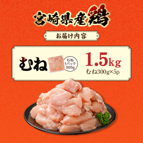宮崎県産鶏むね肉1.5kg!カット済!_LD-84-005-1500g 2583289 - 宮崎県都城市