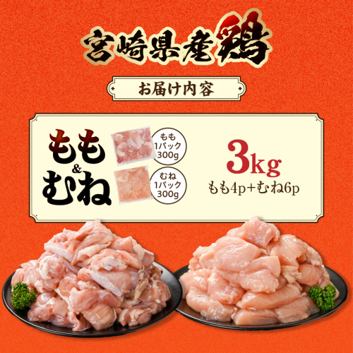 宮崎県産鶏もも&むね3kg(カット済)_11E-84-003-3kg