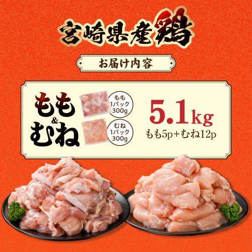 宮崎県産鶏もも&むね5.1kg(カット済)_MJE-84-003-5100g