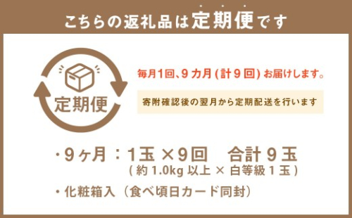 - 【 9ヶ月 定期便 】 静岡県産 高級 アローマメロン 白等級 約1.0kg 以上 × 1玉 マスクメロン メロン めろん 高級ブランドメロン 高級メロン 果物 くだもの フルーツ 定期便 静岡県 菊川市