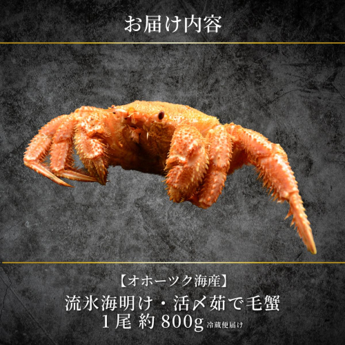 流氷海明け・活〆茹で特大毛蟹1尾約800g冷蔵便届け ABAO110