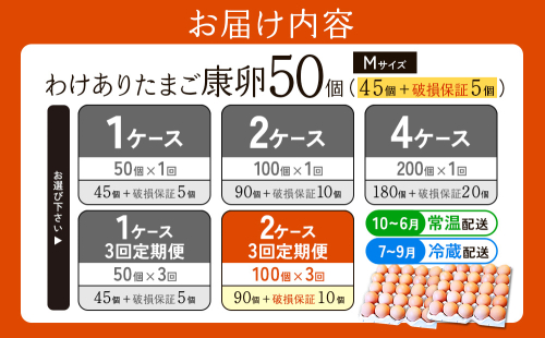 - 【3回定期便】わけありたまご「康卵」(50個)Mサイズ×2ケース
