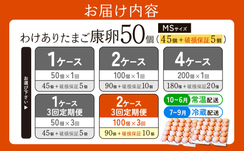 【3回定期便】わけありたまご「康卵」MSサイズ50個× 2ケース 計 100個
