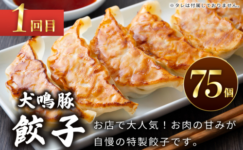 - 1回目:犬鳴豚餃子 75個 (25個×3袋)
