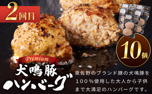 【泉佐野ブランド豚】犬鳴豚餃子 75個/手作りプレミアムハンバーグ(10個入り) 全2回【国産 豚肉 ぶたにく 定期便 食べ比べ 犬鳴ポーク 焼くだけ 人気 総菜 冷凍】 099Z558