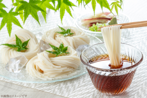 島原手のべそうめんのこだわりは、コシの強さとのどこしの良さです。