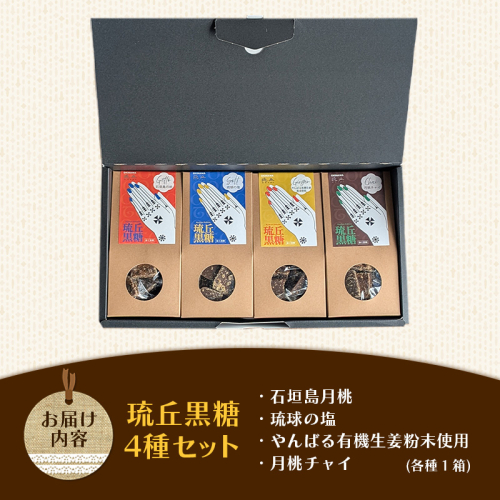 琉丘黒糖 4種セット 【ギフトセット】 - 黒糖 フレーバー 月桃 塩 生姜 ジンジャー チャイ 水あめ不使用 植物原料のみ 人気 おすすめ 無添加 食べ比べ 自然の恵み 贈り物 贈答品 沖縄県 八重瀬町