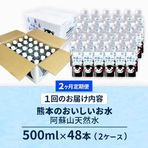 - 【定期便2ヶ月】熊本のおいしいお水 阿蘇山天然水 500ml×48本(2ケース)(共通返礼品・御船町) - 天然水 水 飲料水 ミネラルウォーター 箱買い まとめ買い ペットボトル 飲料 ウォーター 軟水 防災グッズ 防災 備蓄 ローリングストック ストック 熊本県