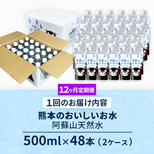 【定期便12ヶ月】熊本のおいしいお水 阿蘇山天然水 500ml×48本(2ケース)(共通返礼品・御船町) - 天然水 水 飲料水 ミネラルウォーター 箱買い まとめ買い ペットボトル 飲料 ウォーター 軟水 防災グッズ 防災 備蓄 ローリングストック ストック 熊本県