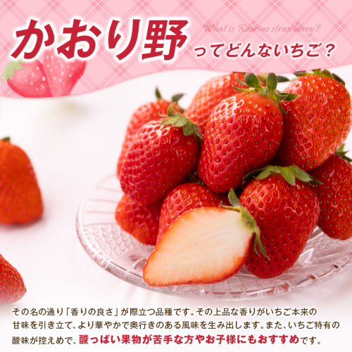 温暖な気候と日照時間に恵まれた新富町。生産者が一粒一粒の状態を見極めながら丁寧に栽培したいちご「かおり野」を計1kgお届けいたします。