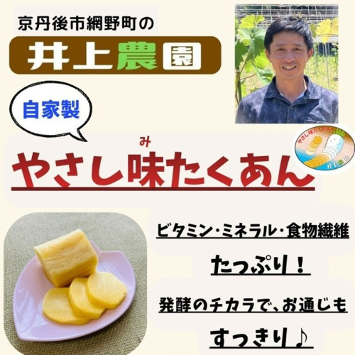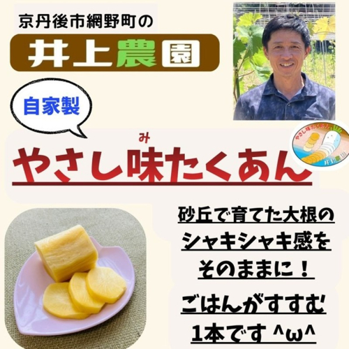 京都府京丹後市網野町俵野の豊かな自然環境の中で栽培された井上農園の大根を沢庵(たくあん)に加工しました。