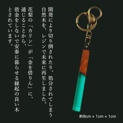 花梨 ( カリン ) の木を使用したストレート型レジン キーホルダー 《エメラルドグリーン》 金運 商売繁盛 縁起物 大工 建築家 職人 天然木材 手作り 工芸品 民芸品 ストラップ 雑貨 小物 アクセサリー [CM022sa]