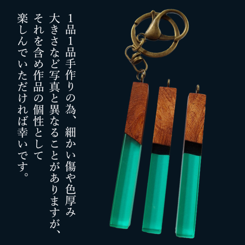 - 花梨 ( カリン ) の木を使用したストレート型レジン キーホルダー 《エメラルドグリーン》 金運 商売繁盛 縁起物 大工 建築家 職人 天然木材 手作り 工芸品 民芸品 ストラップ 雑貨 小物 アクセサリー [CM022sa]