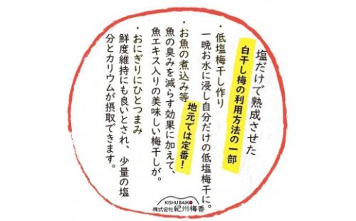 ※梅干しの表面及び汁に含まれる乳白色の液は、塩に含まれるカルシウムやマグネシウム等 にがりと言われる成分が結晶化 あるいは溶けたものです。カビ等ではなく自然由来のミネラルによるものですので 品質や安全性に影響はございません。 気になる場合は水で洗って頂ければと思います。