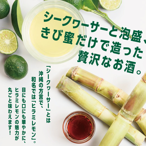 搾り方に拘った沖縄県産シークワーサー果汁と香りがよくほのかに甘い地酒泡盛、沖縄県産サトウキビを煮詰めた深いコクと風味が特徴のきび蜜を使用しています。