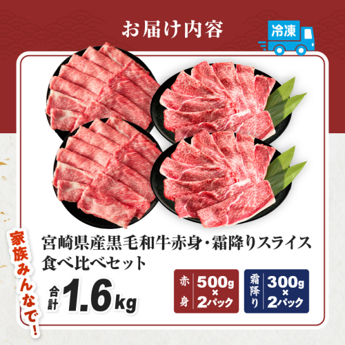 - ≪肉質等級4等級以上≫黒毛和牛(赤身&霜降り)スライス食べ比べセット 合計1.6kg 肉 牛 牛肉 おかず 国産_T030-218