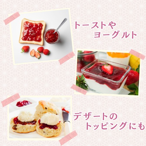 都留市の清らかな水と豊かな自然の中で育った、希少な「夏秋いちご」を使用したいちごジャムです。 夏から秋にかけて収穫される夏秋いちごは、爽やかな酸味と豊かな香りが特長。 その味わいを活かし、果実感を感じられるジャムに仕上げました。 トーストやヨーグルトはもちろん、アイスクリームやデザートのトッピングにもおすすめ。 都留の自然が育んだ、特別ないちごの美味しさをぜひお楽しみください。 【原材料】 ・いちご(山梨県産) ・砂糖 ・レモン果汁