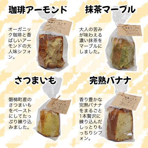 日本名水百選に選ばれた湧水群のある磐梯山麓で、地元の素材や有機素材を使って焼いたシフォンケーキ。