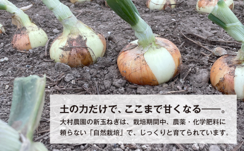 大村農園の新玉ねぎは、栽培期間中、農薬・化学肥料に頼らない「自然栽培」で、じっくりと育てられています。