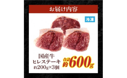 国産牛ヒレステーキ 200g×3個(合計600g)
