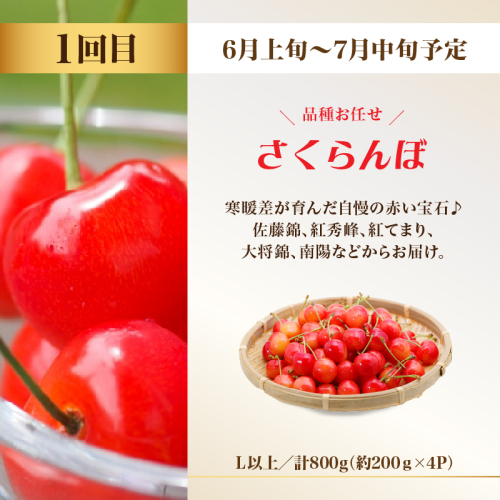 - 【定期便1回目】:さくらんぼ(品種お任せ)L以上 約200g×4P