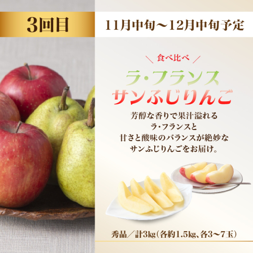 【定期便3回目】:ラフランスとサンふじりんごの食べ比べセット 約3kg(各約1.5kg、各3~7玉)秀品