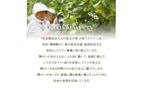 「社会福祉法人AJU自立の家 小牧ワイナリー」は、知的・精神障がい者の就労支援、経済的自立を目的とした、ワイン事業に取り組んでいます。