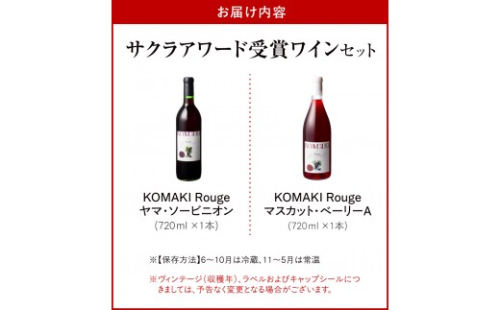 - 小牧ワイナリー サクラアワード受賞ワイン2本セット(小牧産ぶどう100%使用)[026A12]